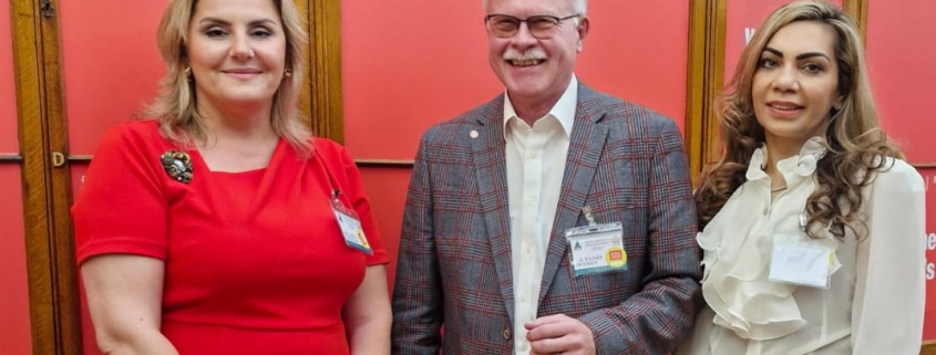 V.l.n.r.: Dr. Sue­la Papa­ge­lis, CEO Sky Con­sul­ta­ti­ons Ltd. Facul­ty, Bos­ton Uni­ver­si­ty U.S — Rai­ner Doe­men — Dr. Fati­ma Zaman, CEO Sere­ni­ty U.K. Care Ltd.